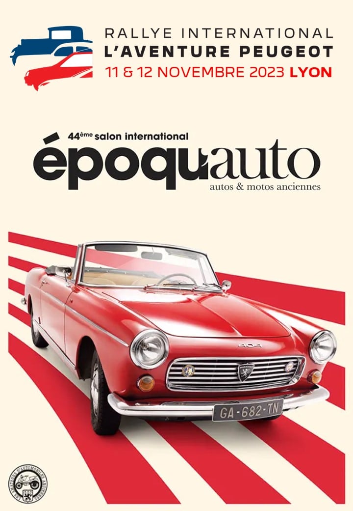 Dear Members, we give you an appointment in Lyon on November 11 and 12 for an unprecedented and exceptional L’Aventure Peugeot 2023 international rally! You guessed it, we invite you to come and celebrate with us the honoring of the Peugeot brand at the EpoquAuto Show in Lyon.